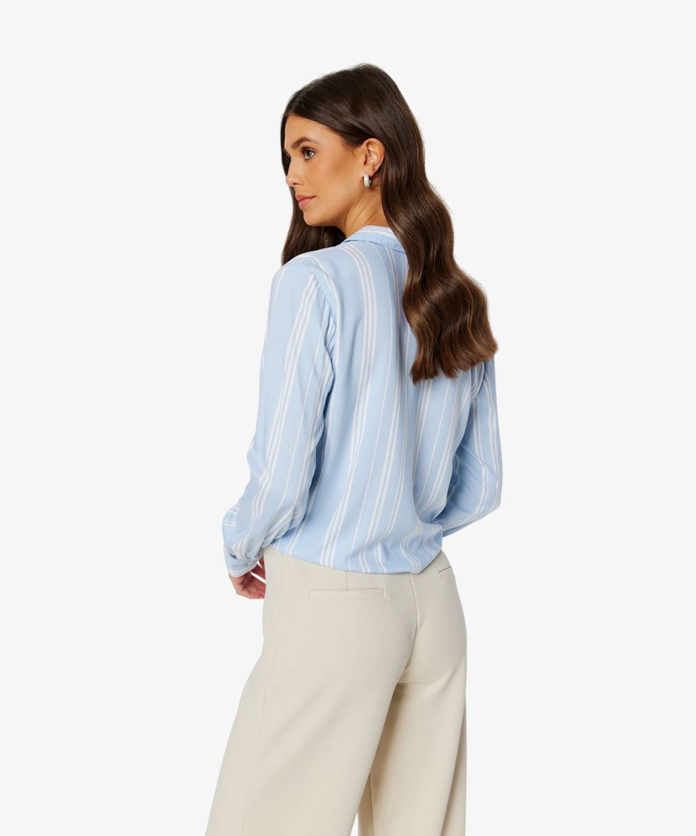 Women Blue & White Relaxed Striped Casual Shirt Tie-up